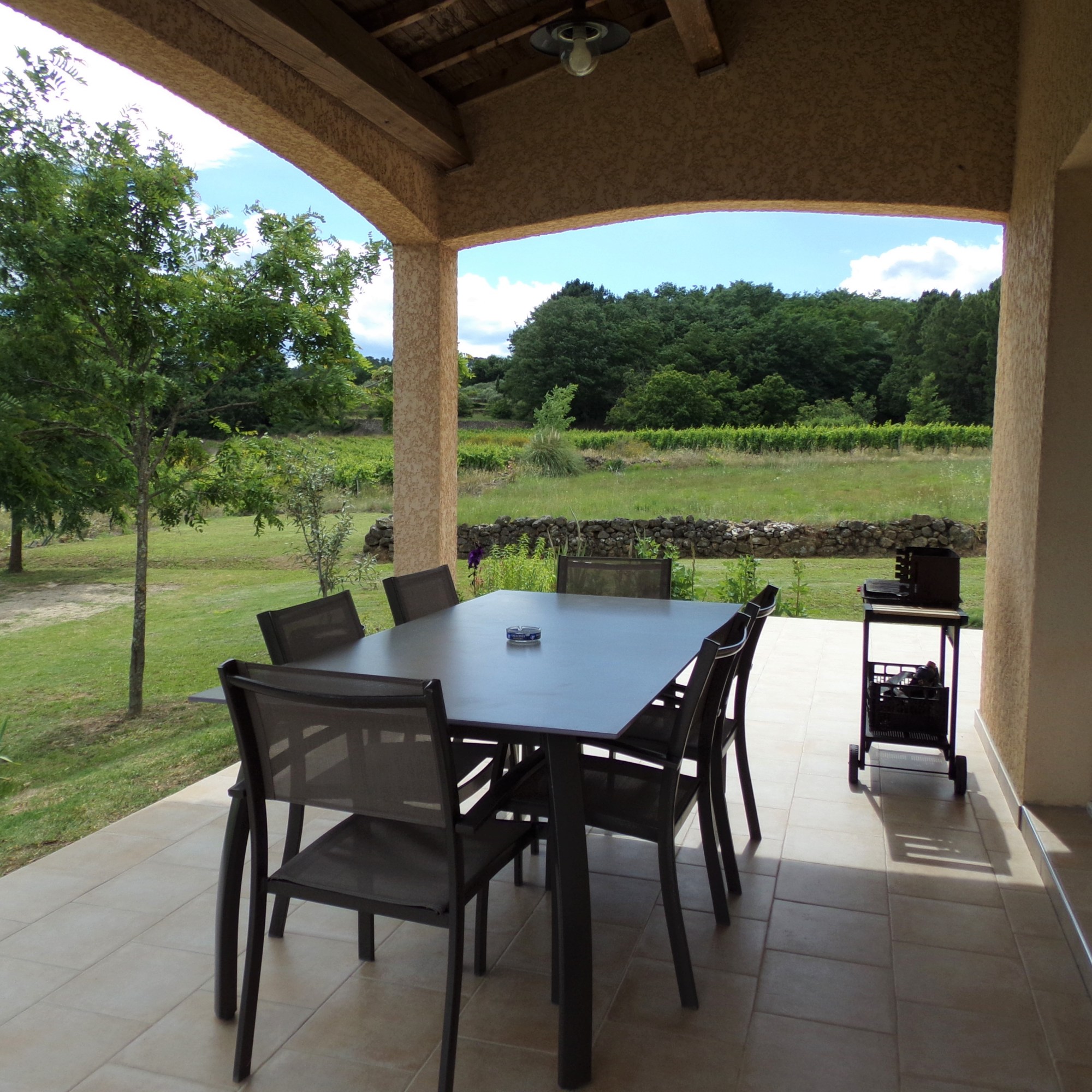 Profitez pleinement de l’extérieur grâce à une grande terrasse aménagée pour vos moments de détente et vos repas en plein air. Vous y trouverez un salon de jardin avec table basse, une table à manger pouvant accueillir jusqu’à 8 convives, des transats pour profiter au soleil, un barbecue au charbon et un parasol pour les journées les plus chaudes.