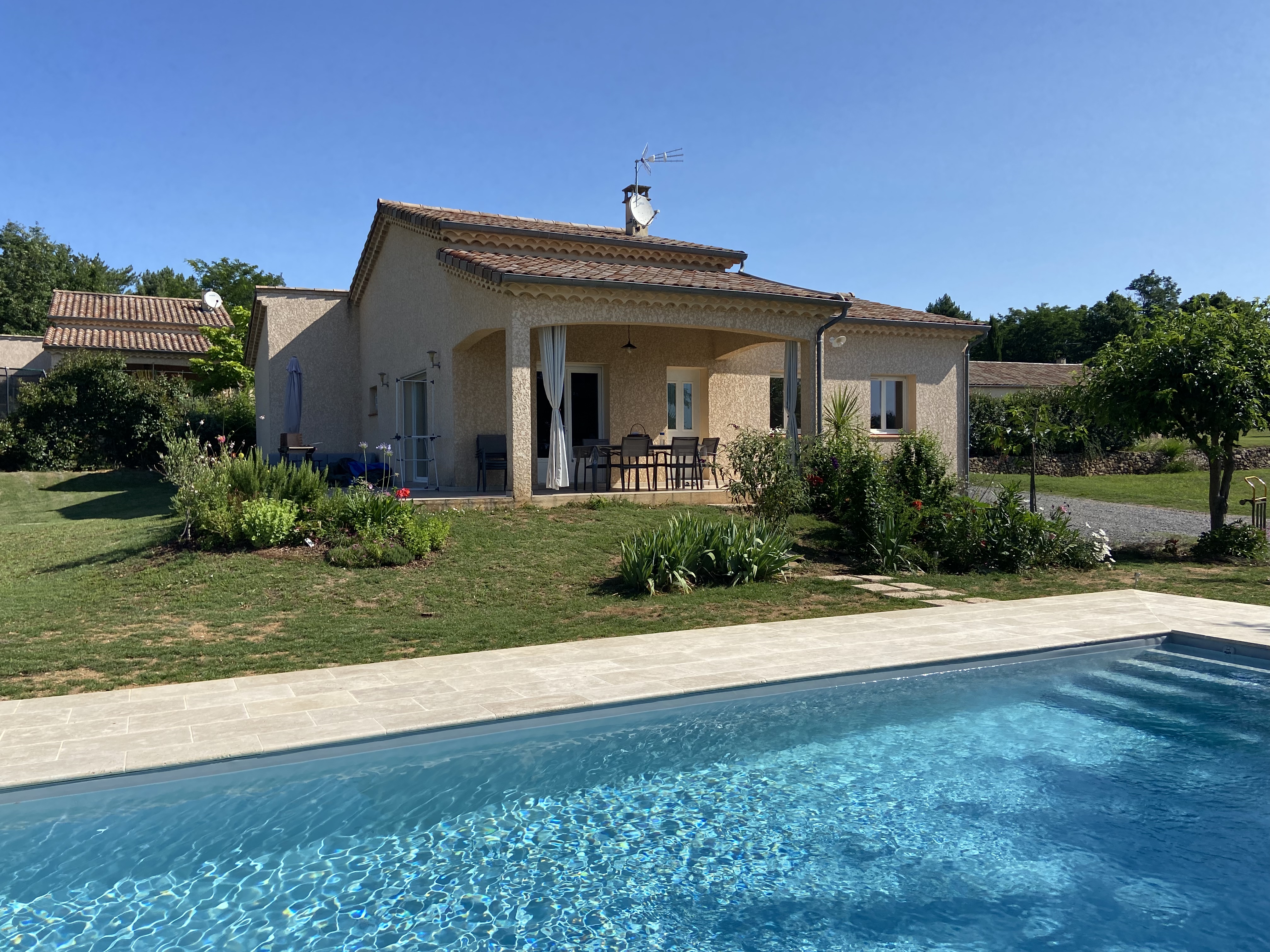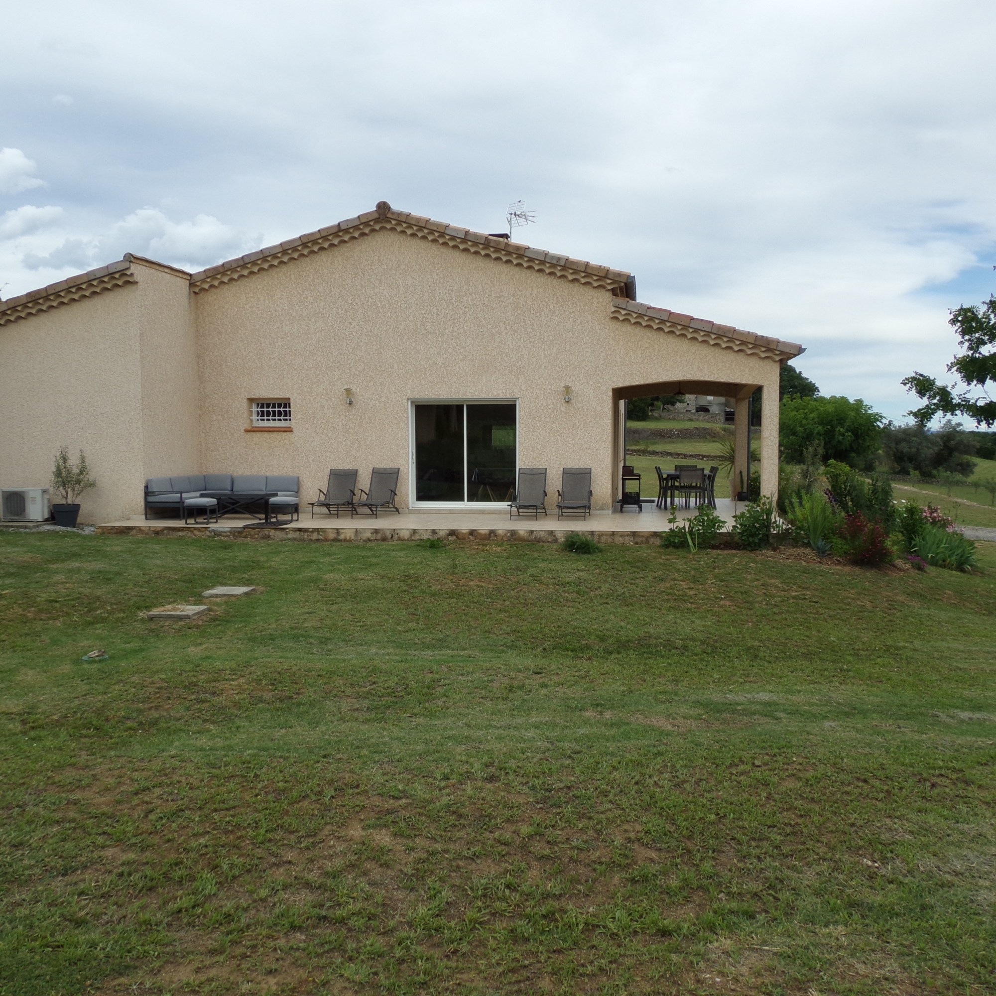 La maison est implantée sur un terrain d’environ 1 500 m², non clos, vous offrant un espace naturel et paisible en pleine campagne ardéchoise.