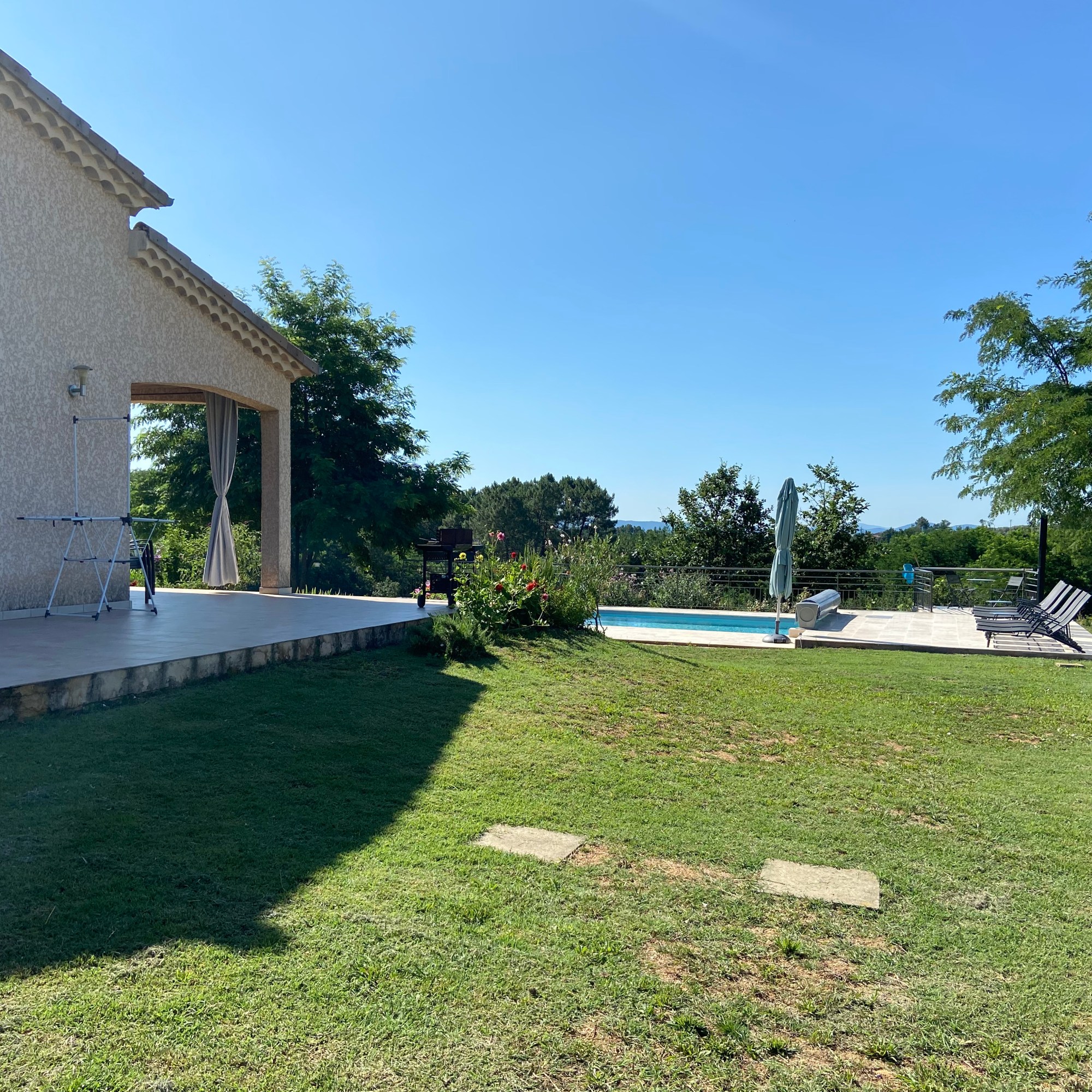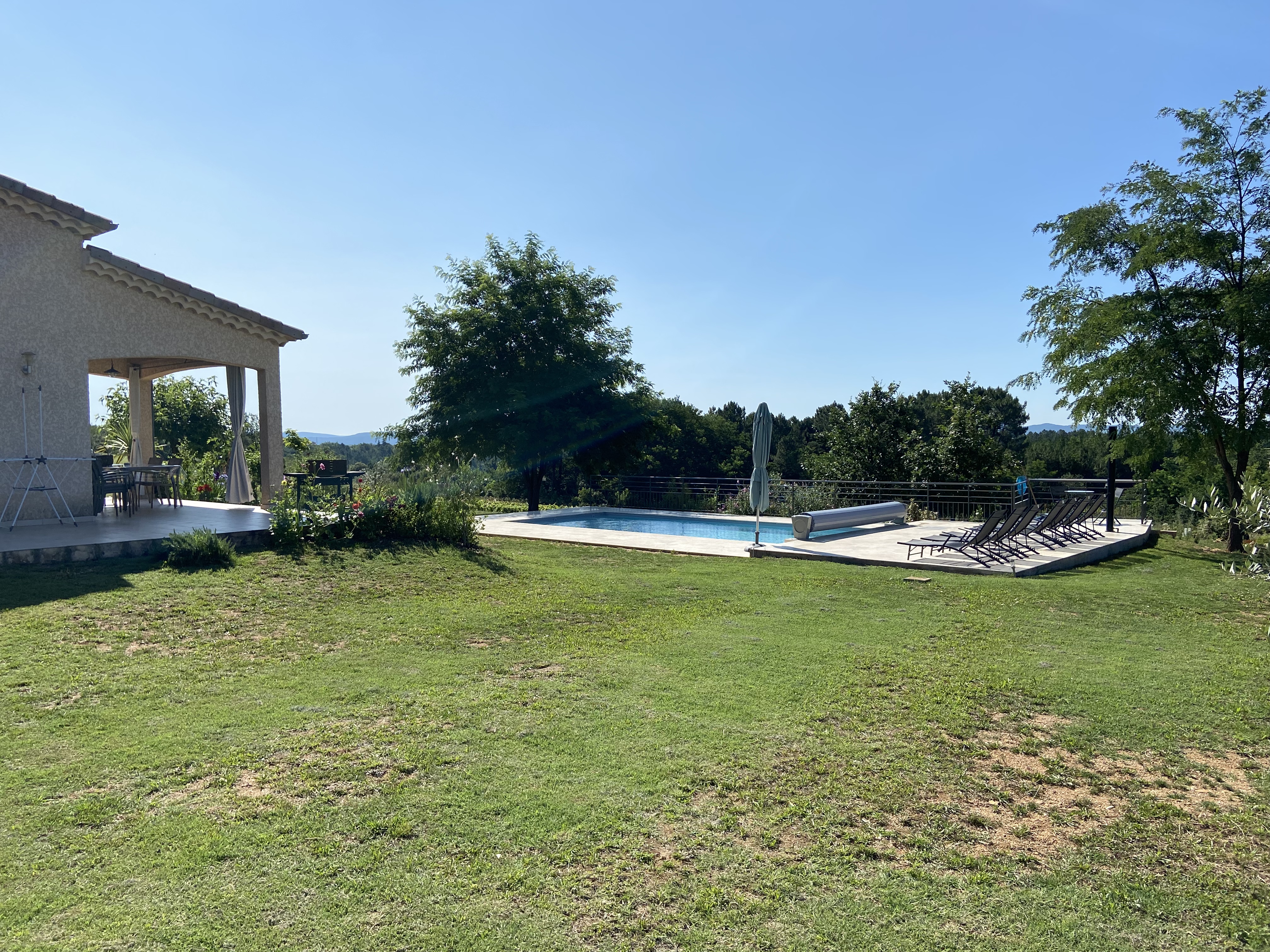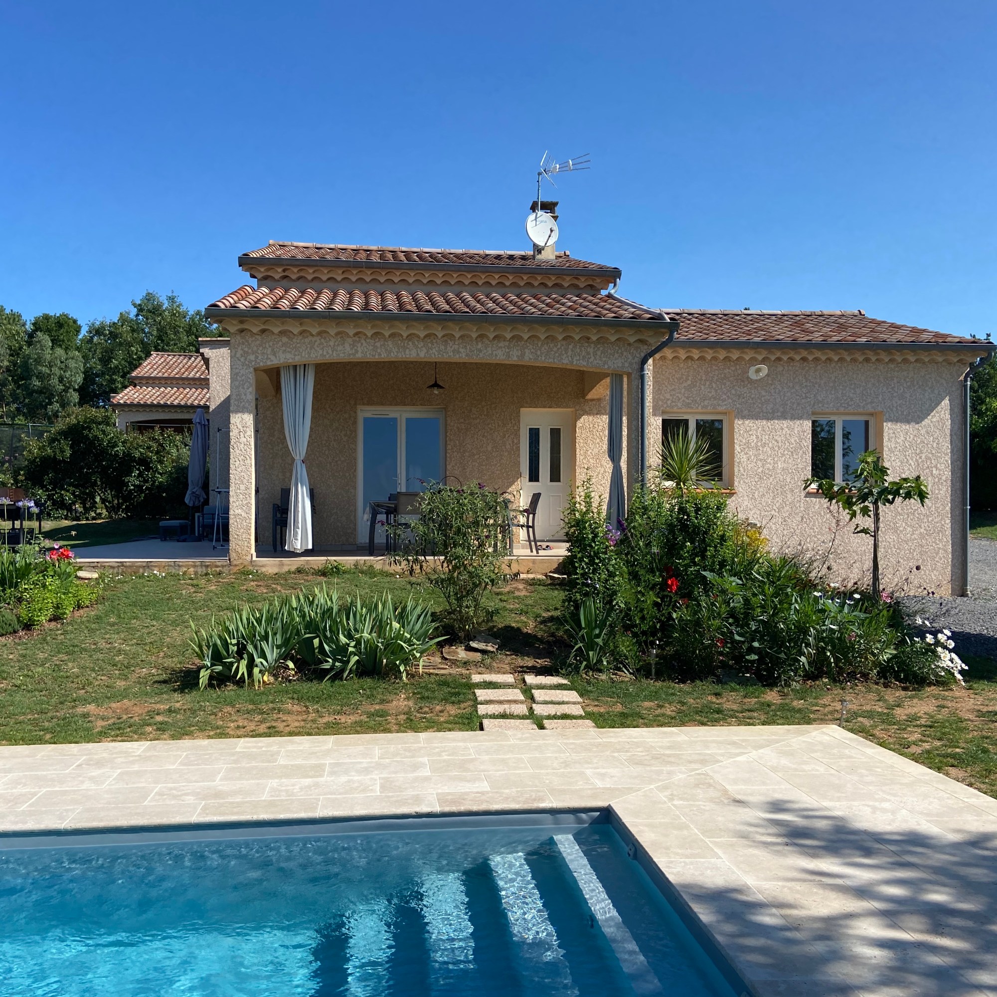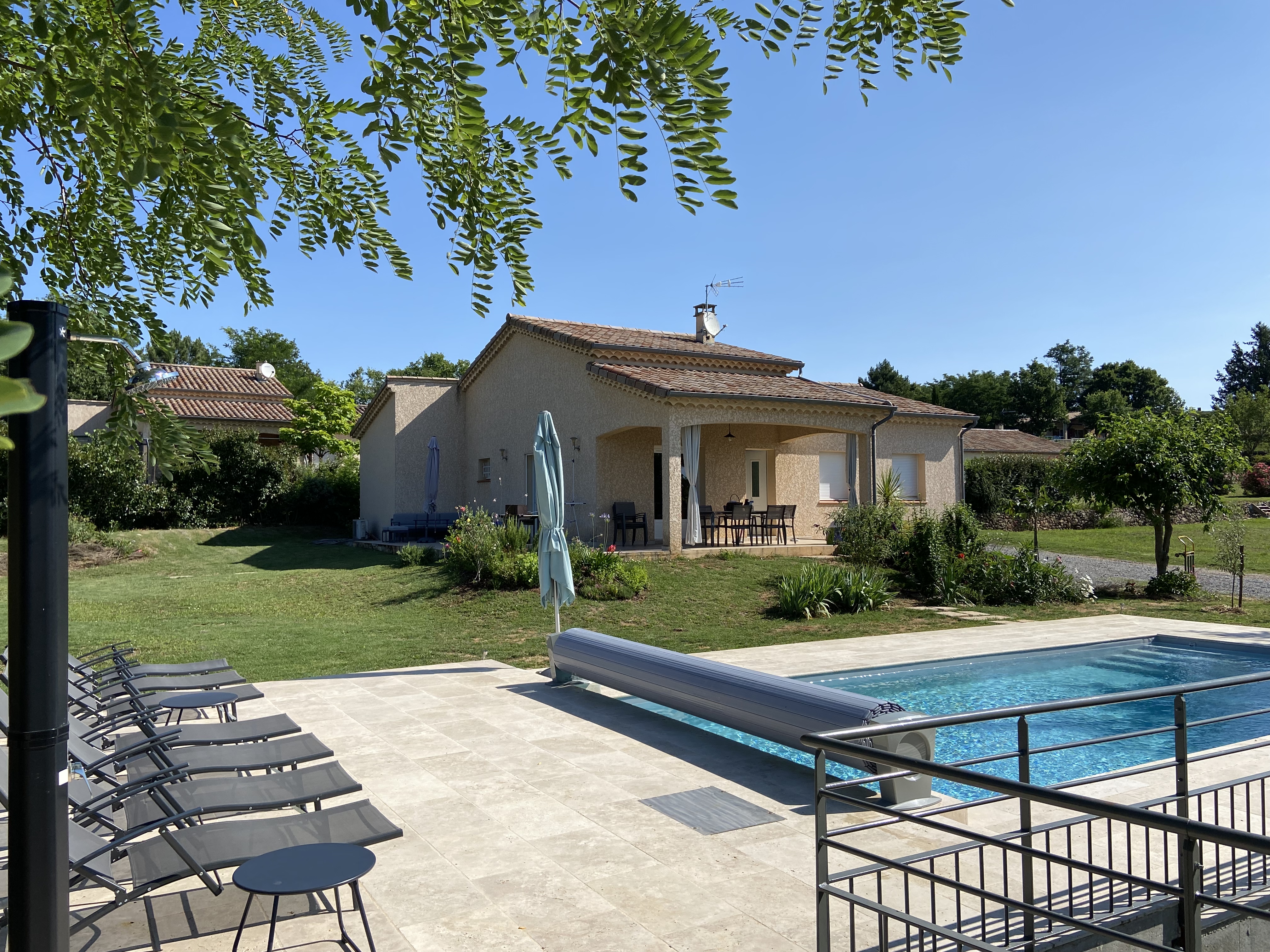 Détendez-vous dans une piscine privée de 9 × 4 mètres, équipée d’un escalier sur toute la largeur pour un accès facile. Sécurisée par un rideau automatique, elle bénéficie d’un traitement au sel, plus doux pour la peau. Possibilité de la chauffer.