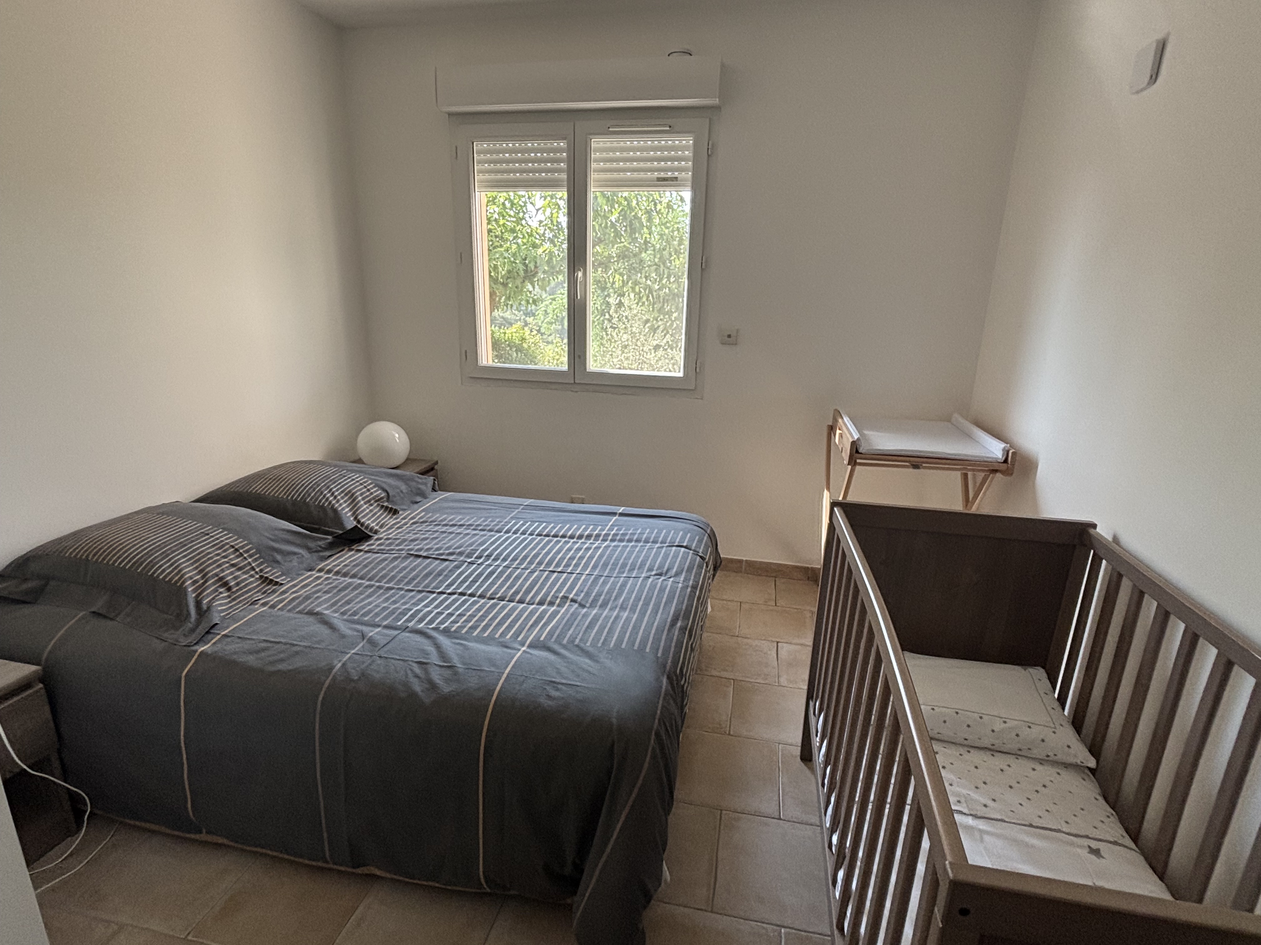 Cette chambre dispose d’un lit double, d’une commode, de tables de chevet et d’une penderie. Parfaite pour accueillir couples ou enfants.
