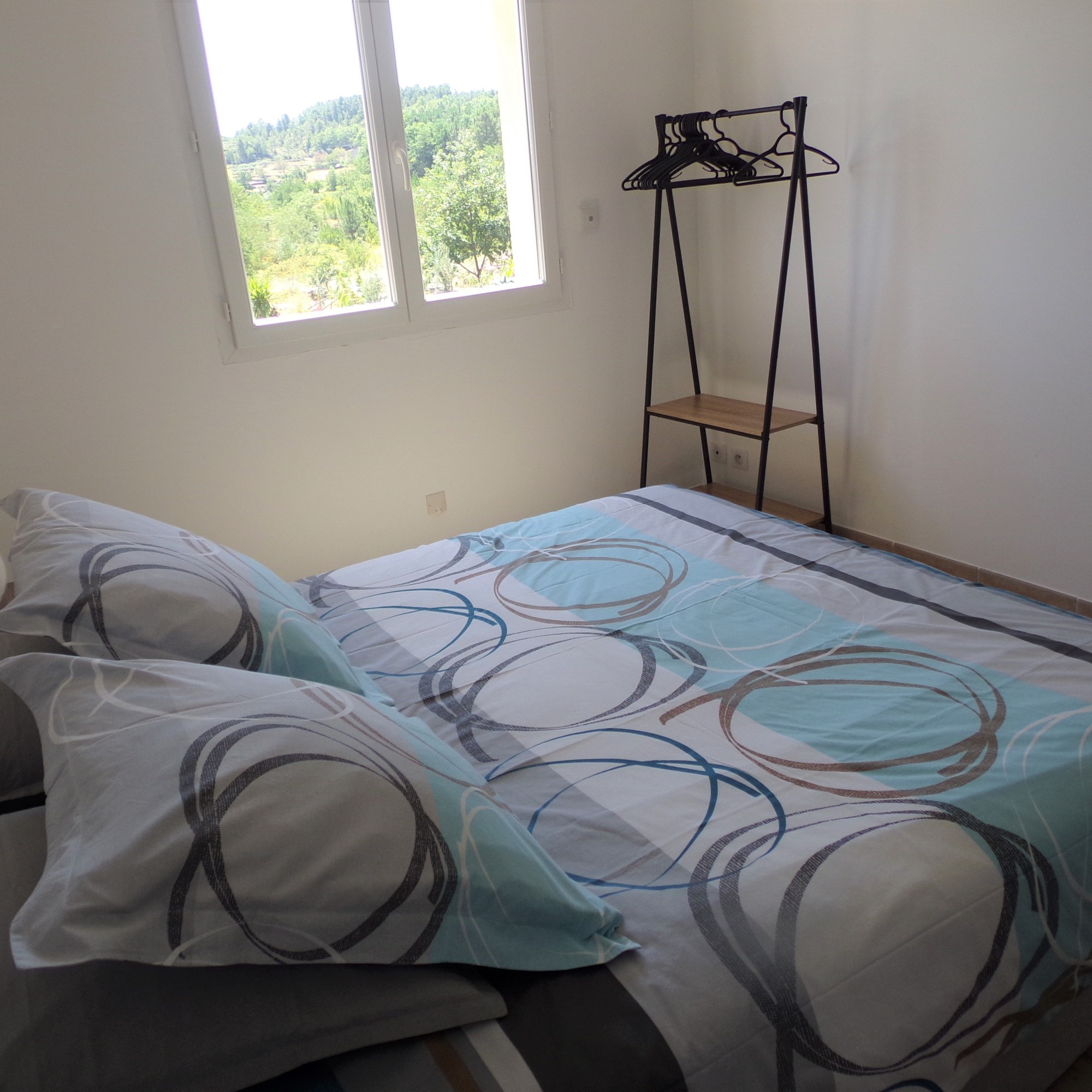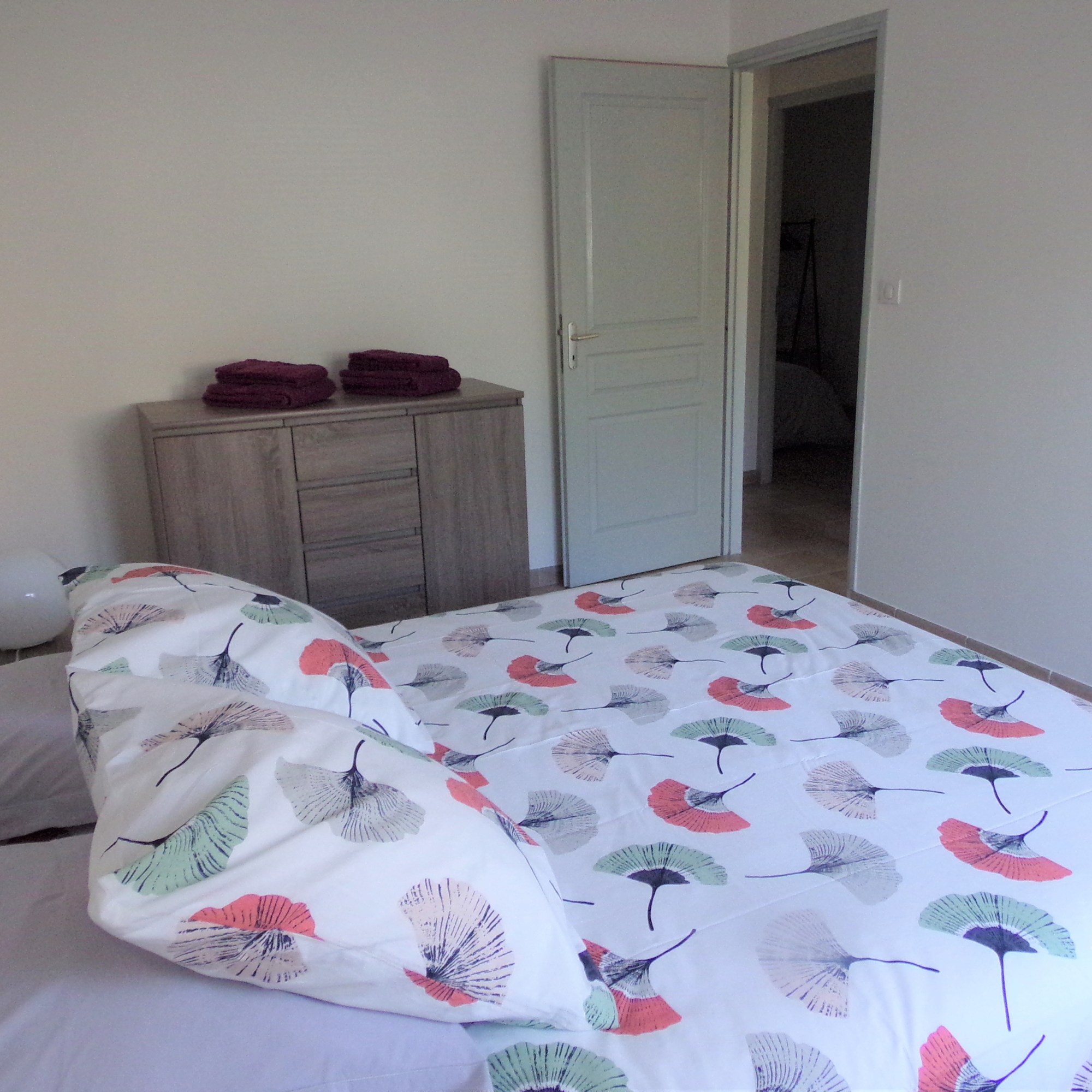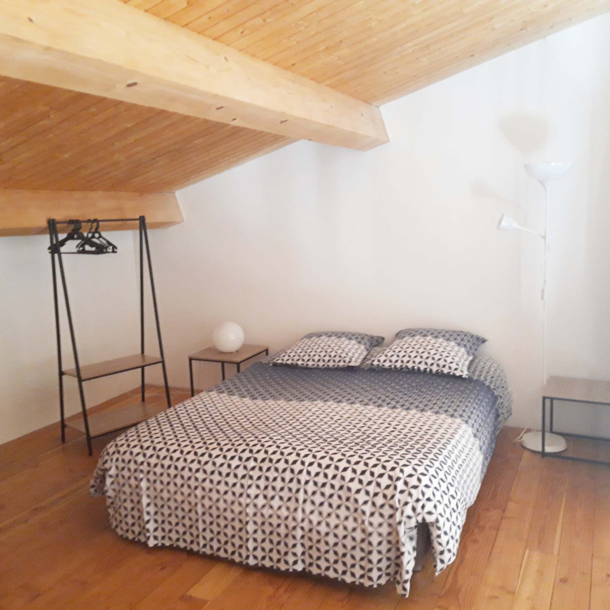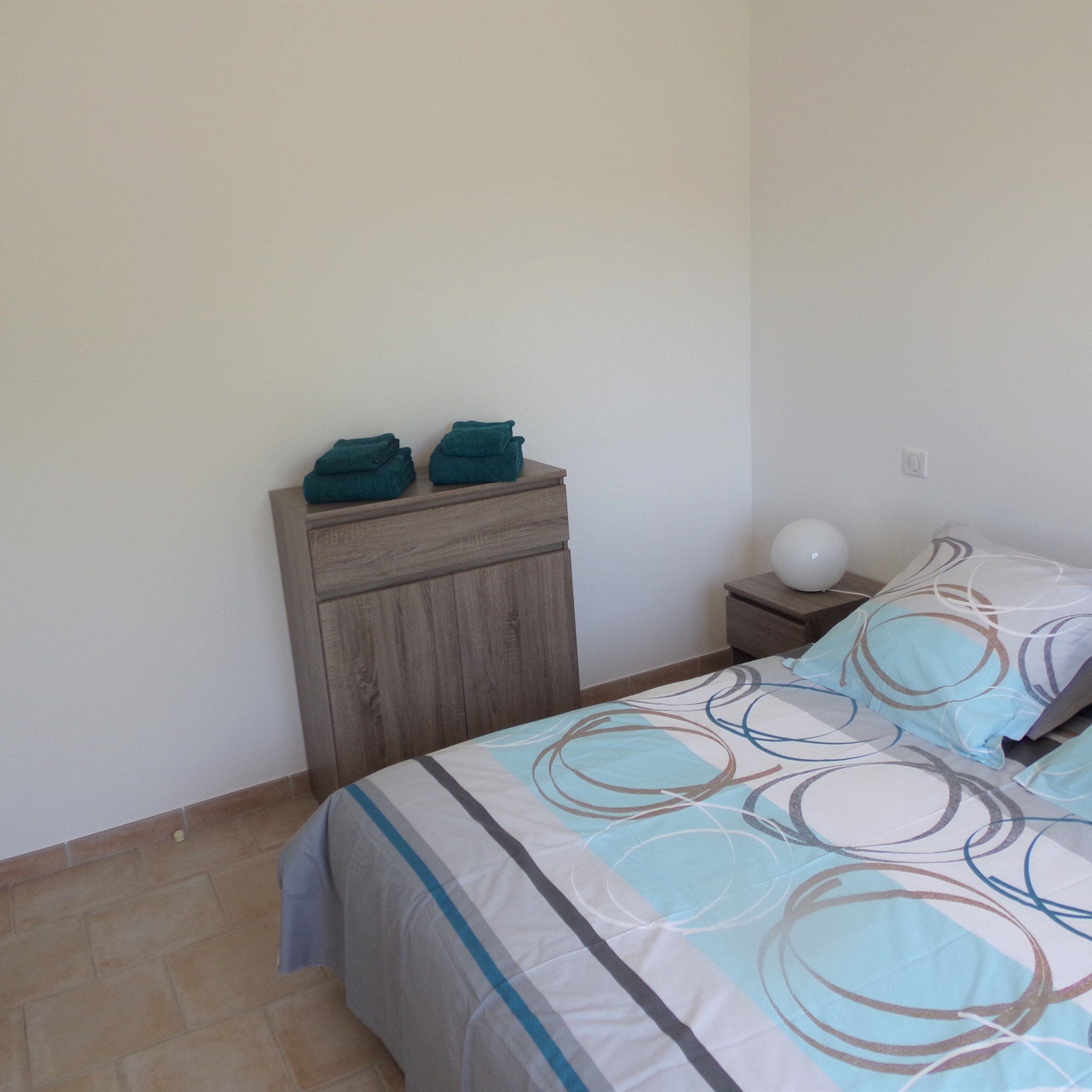 Cette chambre dispose d’un lit double, d’une commode, de tables de chevet et d’une penderie. Parfaite pour accueillir couples ou enfants.